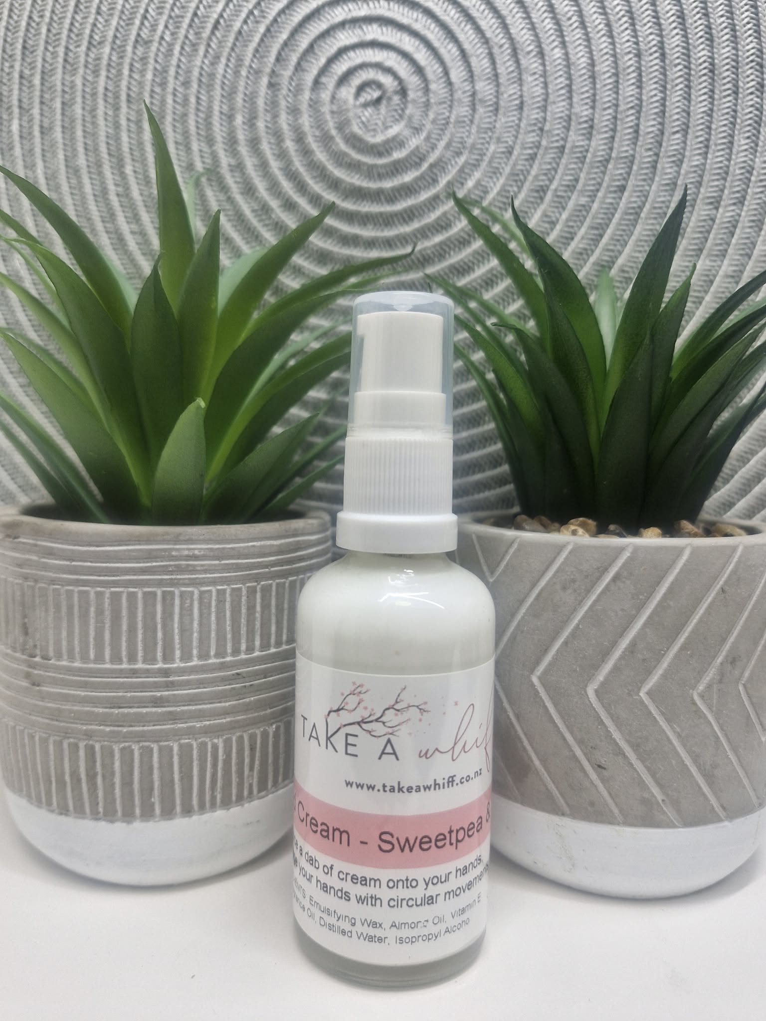 Hand cream designed to leave your hands soft and lightly scented, with a glass bottle and pump